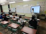 入学式からおよそ1週間が過ぎ、 1年生の給食がスタートしました。 初めての給食の様子をお伝えします。 教室で、給食の進め方やきまりについておはなしを聞いた後、 ちょっと大きめの白衣を着て、給食当番が整列しました。 食缶や食器を準備して、配膳がスタートしました。 初めてとは思えないぐらい上手に取り分けていました。 配膳が終わると「給食の準備ができました!」「ご苦労様でした!」 そしていよいよ、みんなで「いただきます。」 楽しみにしていた給食が始まりました。 感想を聞いてみると、 「とってもおいしかった。」 「全部食べられたよ。」 「ゼリーが出てうれしかった。」 と、笑顔で答えてくれました。