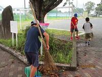9月の環境ボランティア作業は、校庭の東・南・西側の側溝をきれいにしました。今回、参加してくださった方の中には、数年ぶりというシニアの方がいました。また、児童や中学生も手伝ってくれて、大助かりでした。
