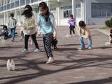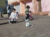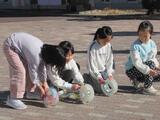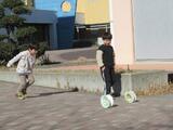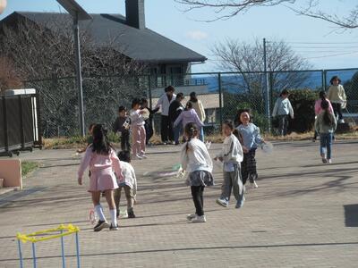 寒さに負けず、1年生が手作りのおもちゃで遊んでいました。