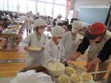 食缶や食器を準備して、配膳がスタートしました。