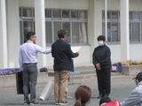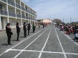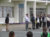 授業後はグラウンドに移動して職員紹介、PTA役員紹介、そして長年にわたって子供たちのためにご尽力いただいている方に感謝状の贈呈を行いました。