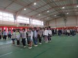 まずはそれぞれ進級した学年の教室で朝の準備を済ませ、体育館に集まりました。
