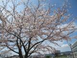 校庭にあるシンボルの桜がほぼ満開で、子供たちの下校を見守っていました。