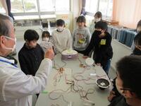 5年生が磁石について学習しました。磁力線を視覚的に捉えたり、地球自体が磁石であることを方位磁針で確認したりしました。