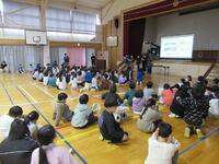 会瀬小の創立記念集会を体育館で行いました。創立当時のことについて、クイズ形式で問題を出し、みんなで答えました。創立当時は500人以上の児童がいたそうです。今の2倍以上ですね。また、以前の会瀬小では、飼育委員会や新聞委員など10の委員会活動があったそうです。