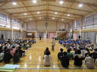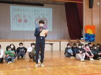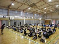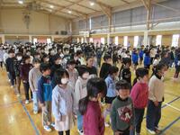 体育館で、全校朝会を行いました。1,2年生が、静かにきちんと整列していて素晴らしいです。1月を全体的に振り返ると、健康で過ごすことができました。挨拶もレベルアップしてきました。
