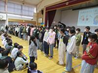 4年生・5年生・6年生で、卒業式の全体練習が始まりました。今日が1回目です。礼の仕方や座り方を確認し、校歌を練習しました。
